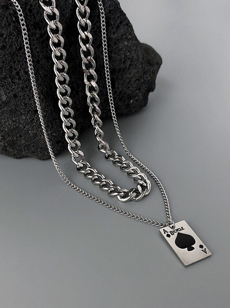 1/2 Db Divatos Hip-hop Többrétegű Póker Ásó Ász Titán Rozsdamentes Acél Nyaklánc