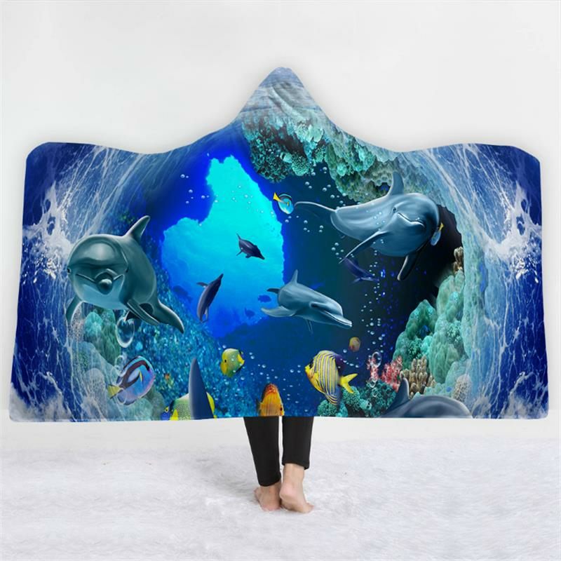 150x200 cm-es Ocean Scenery Sorozatú Takaró Kapucnival Melegen Viselhető Plüssszőnyeg