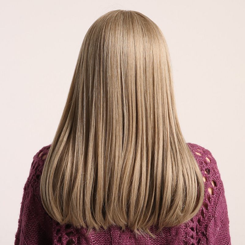 20 Hüvelykes Vegyes Színű Hajparóka Neat Frufru Hosszú Egyenes Hajú Paróka Függőleges Természetes Rugalmas