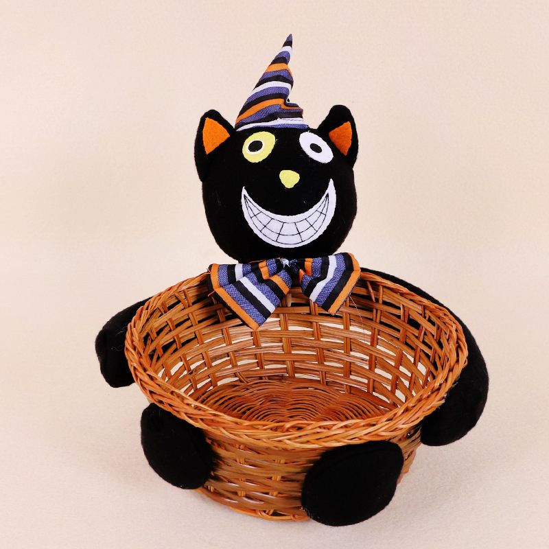 2023 Halloween Dekorációs Bárasztal Elrendezése Kézzel Szőtt Gyümölcskosár Sütőtök Cukorka Keksz Kosár Bambusz
