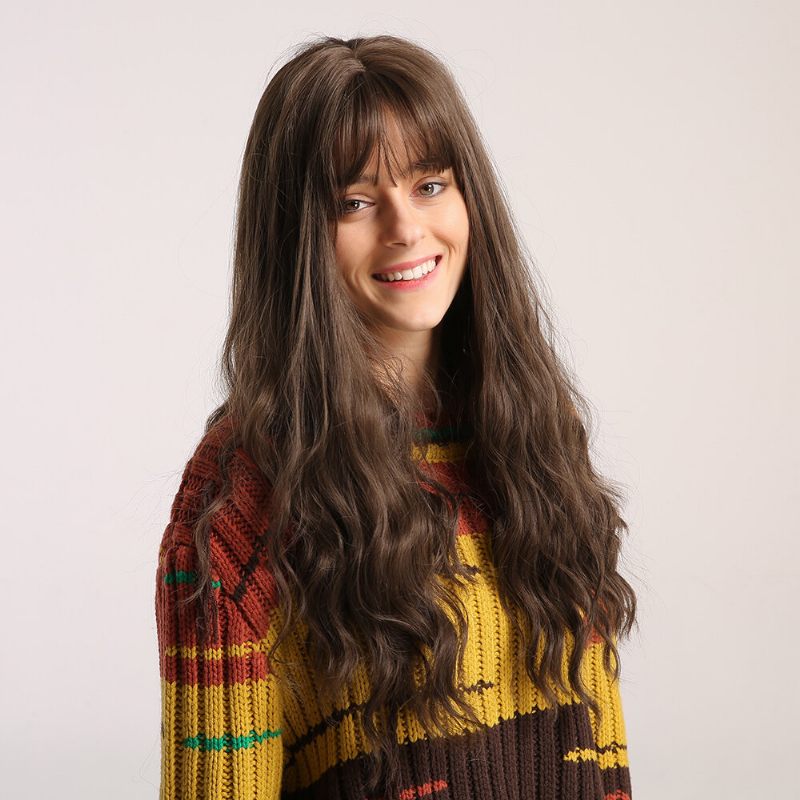 26 Hüvelykes Barna Hullámos Hosszú Göndör Haj Frufru Paróka Szintetikus Haj Frufruval Természetes Bolyhos Haj