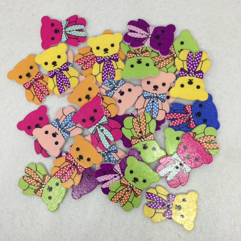 50db Aranyos Medve Formájú Fa Varrógombok Mosható Kör Virágmintás Díszítőgombok