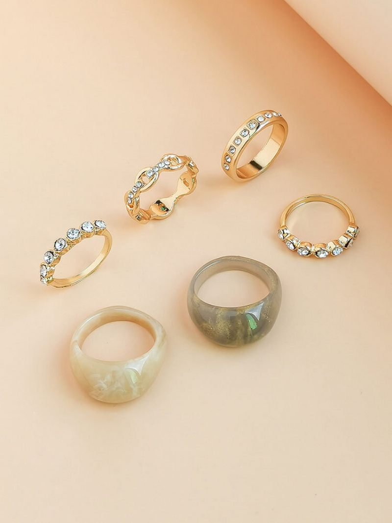 6 Db/szett Trendi Personality Mikroberakásos Strassz Üreges Geometriai Forma Ötvözet Akril Gyűrűk