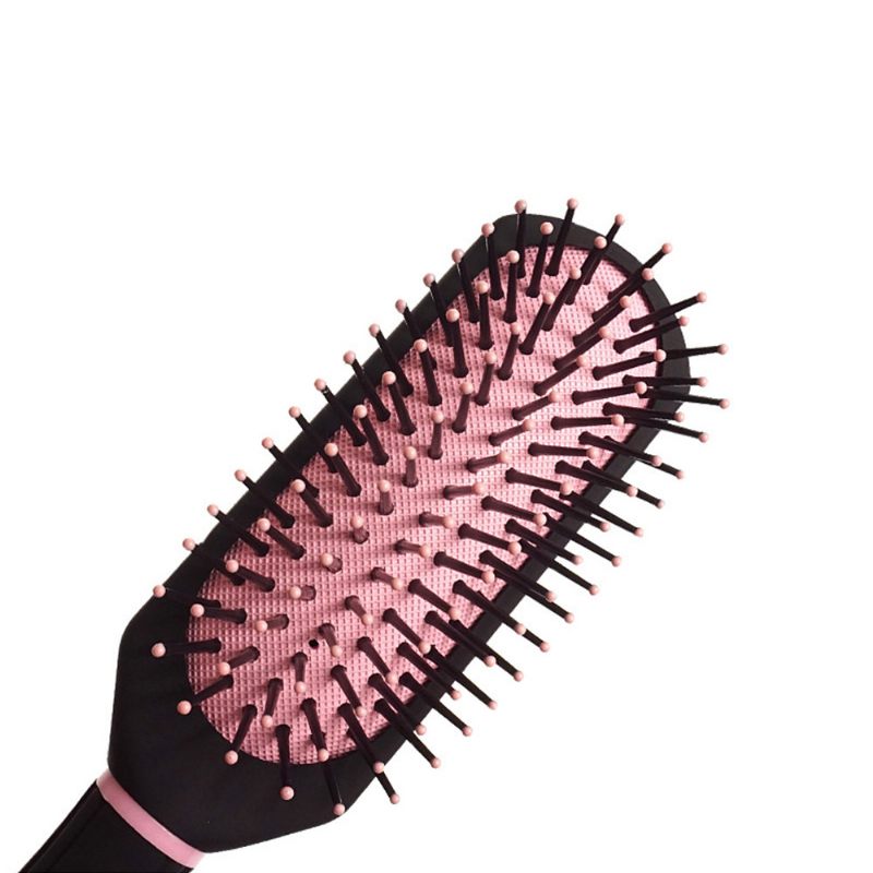 Ív Alakú Légzsák Légnyílással, Amely Biztosítja, Hogy Légáteresztő Legyen, És Rugalmasan Visszapattanjon Fésülés Közben, Így A Fej Vérkeringését Javító Masszázshatás Érhető El;Lyuk A Levegőpárnán, Hogy Elősegítse A Jobb Hőelvezetést A Fodrászat Során;Ergonomikus Kialakítású Fogantyú, Amely Megkönnyíti A Fogást, És Kellemes Kézérzetet Biztosít.