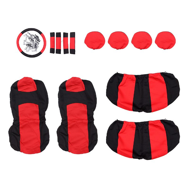Autó Üléshuzatok Piros Fekete Teljes Készlet Kormánykerék Öv Párna Fejtámlával