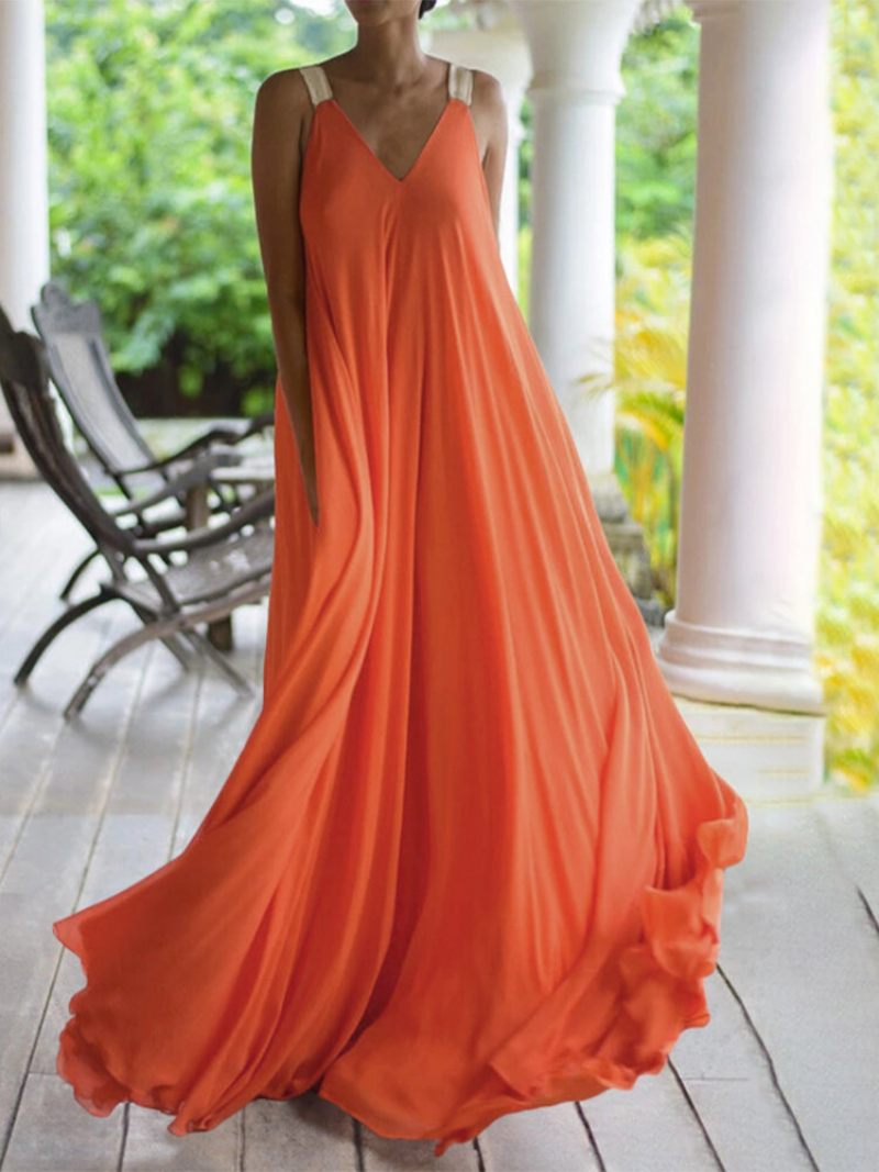 Bohemian Elasztikus Pántok Egyszínű Nagyméretű Maxi Ruha