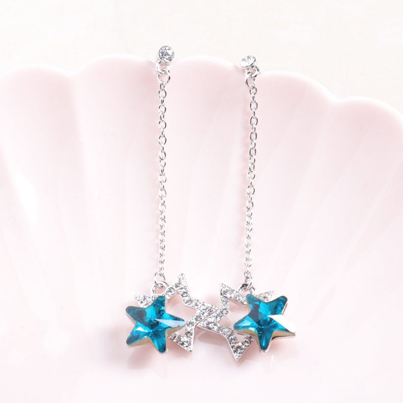 Divat Kék Lila Színes Csillagok Lógó Fülbevaló Kristály Strassz Aranyos Női Ajándék