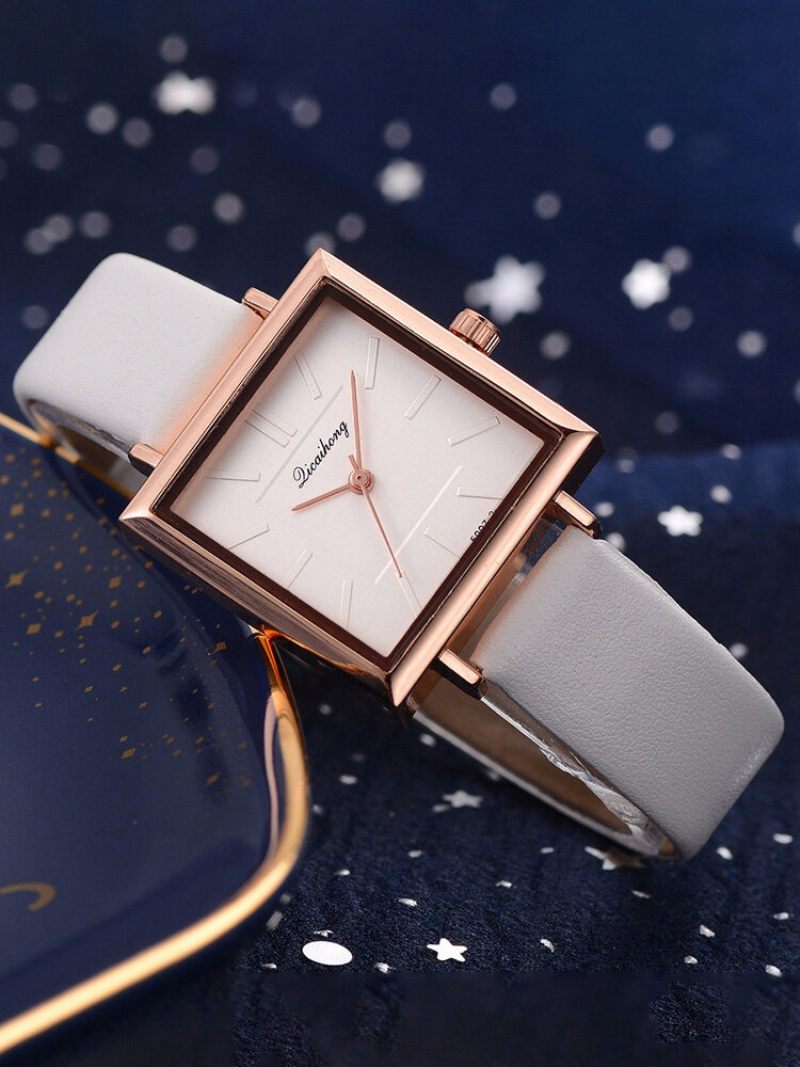 Divat Négyzet Alakú Női Karóra Tiszta Színű Bőr Kvarcóra