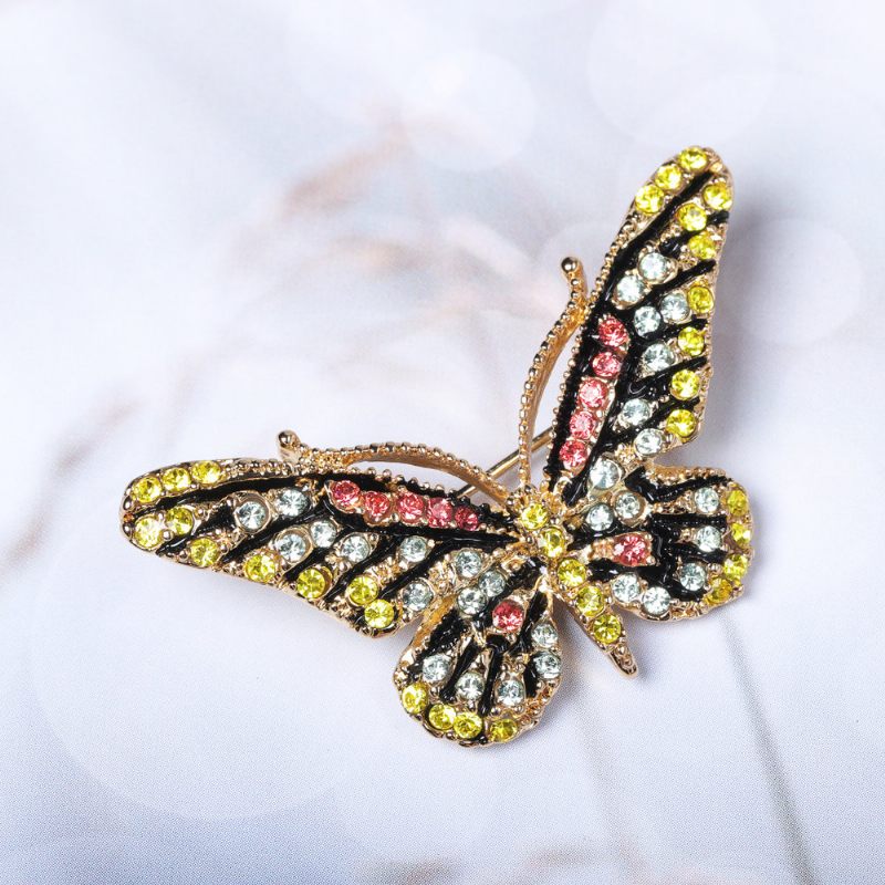 Divatos 18 Karátos Arany Medál Lánchoz Pillangó Brossok Színes Strasszos Luxus Tűk Nők Számára