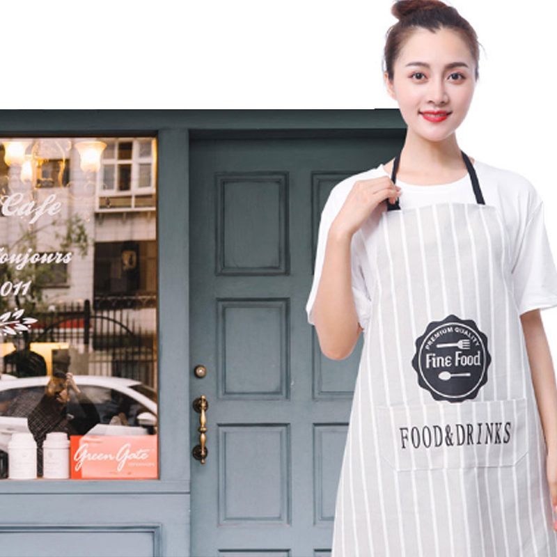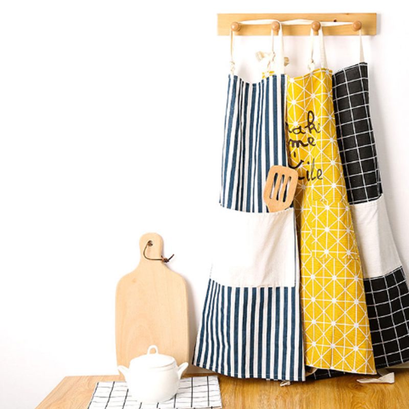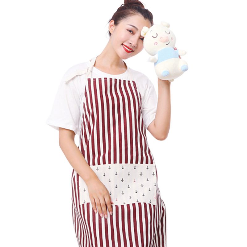 Divatos Konyhai Kötény 100%-os Főzőkötény Zsebes Kötényekkel Csíkos Pontnyomtatási Mintákkal Háztartási Kiegészítő