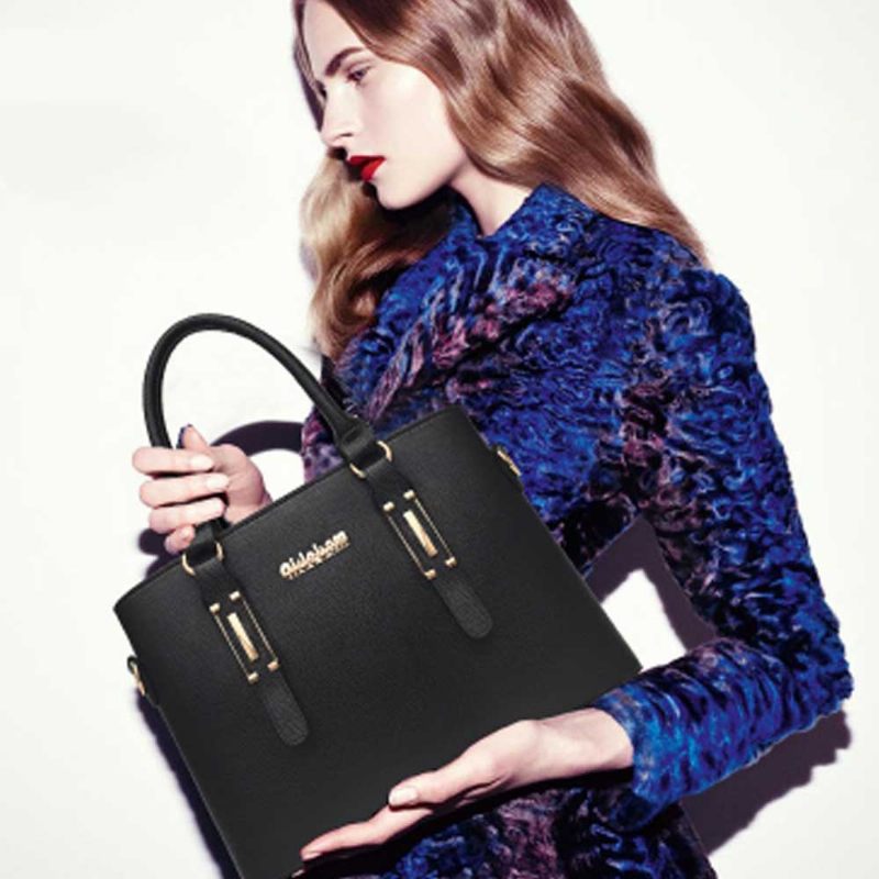 Divatos Pu Bőr Női Válltáska Fémmel Megerősített Kézzel 2 Készlet Táskákkal