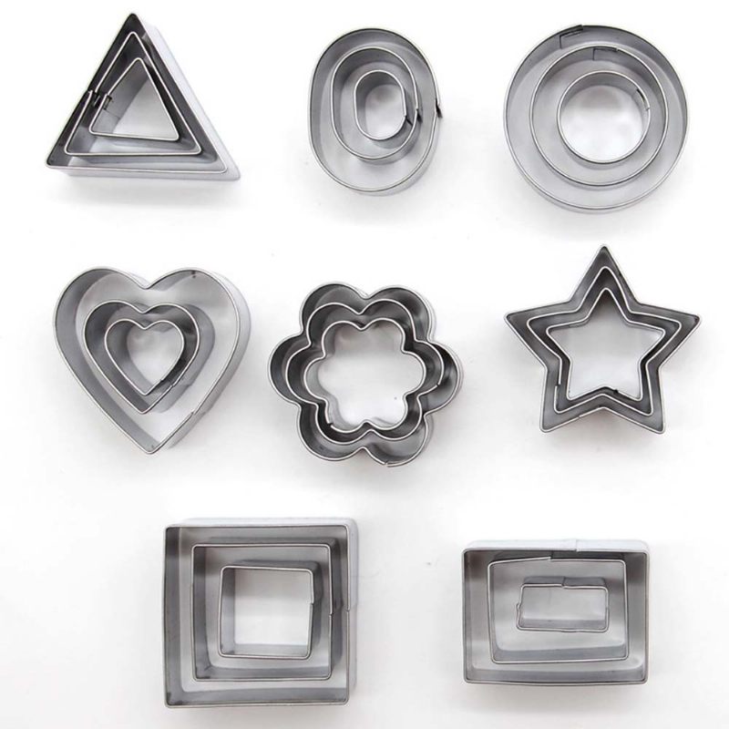 Diy Formájú Tortavágó Vasdobozos Készlet 24 Rozsdamentes Acél Sütőedény Kekszformával Háromszög Virág Szív Négyzet Alakú