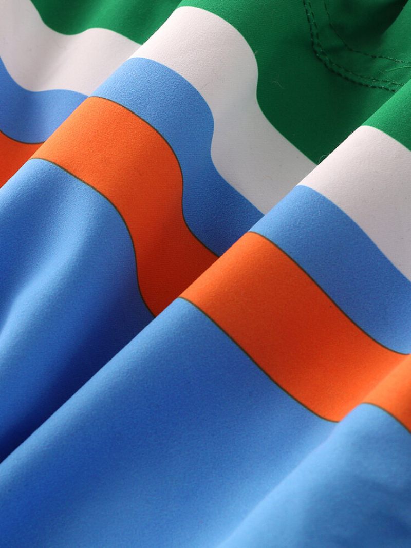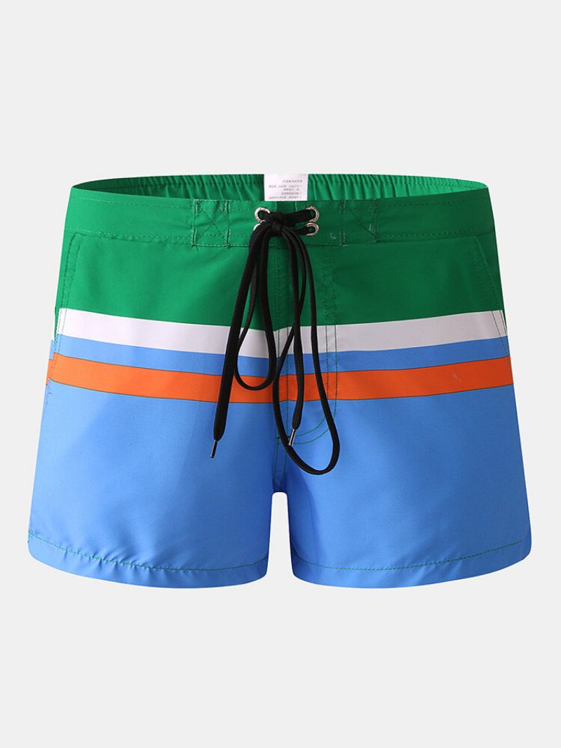 Férfi Kontraszt Színű Mini Deszka Rövidnadrág Gyorsan Szárad Húzózsinóros Alkalmi Strandrövidnadrág