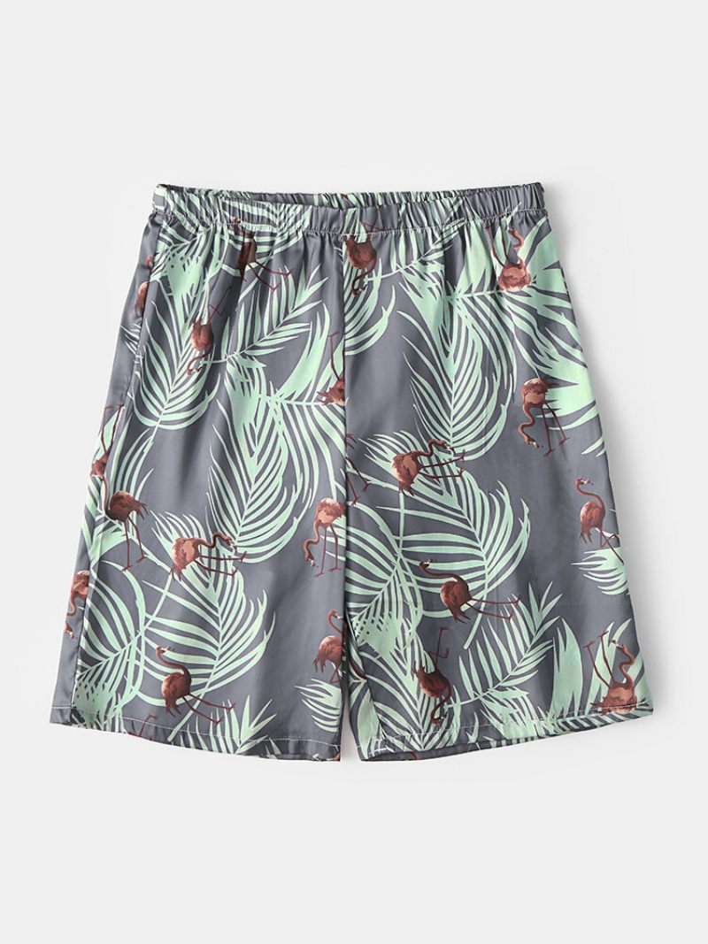 Férfi Nyári Trópusi Mintás Alvónadrágok Vékony Flamingó- És Növénynyomtatású Otthoni Rövidnadrágok
