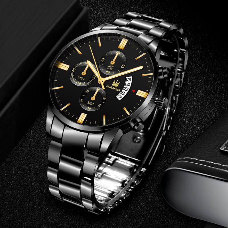 Férfi Óra Relogio Direct Luxus Katonai Kvarc Óra Rozsdamentes Acél Arany Naptári Dátum Karóra