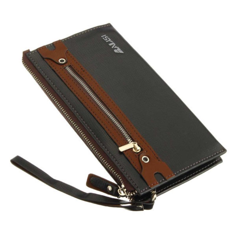 Férfi Üzleti Vintage Szabadidő Hosszú Cipzáras Pénztárca Kártyák Készpénz Érmék