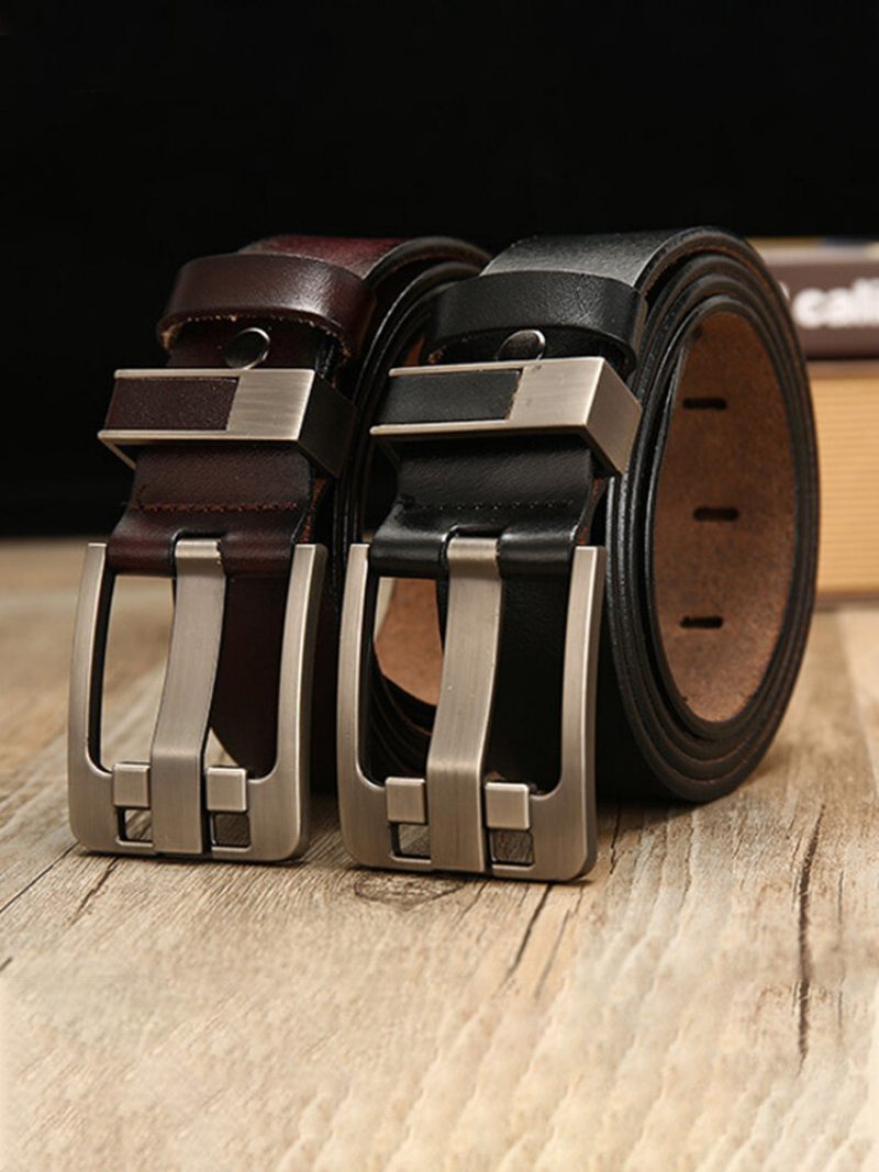 Férfi Valódi Bőr Másodrétegű Marhabőr Egyszínű Ötvözet Tűs Csat Vintage Alkalmi Üzleti Öv