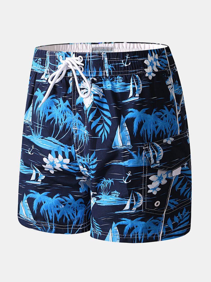 Férfi Virágmintás Húzózsinór Deszka Rövid Puha Hálós Úszónadrág Zsebbel