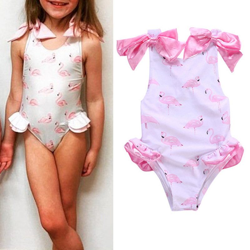 Hattyú Mintás Tipegő Lány Masni Hát Nélküli Fürdőruha Strandruha 1-7 Éves Korig