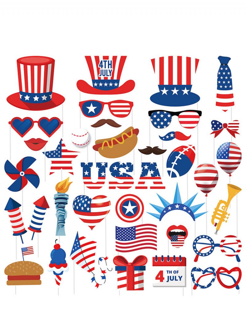 Július 4. Amerikai Függetlenség Napja 38 Darab Otthoni Parti Dekoráció Fotó Kellék Vicces Szakáll Napszemüveg Ragasztó Papír Kellékek