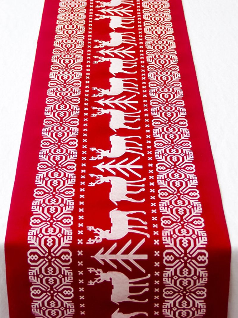 Karácsonyi Vászonterítő Zászló Otthoni Buli Dekoratív Jávorszarvas Kárpit Piros Asztali Futók Burkolat