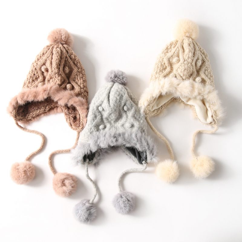 Kötött Gyapjú Sapka Új Fülvédő Pom Pom És Húzózsinóros Dekor