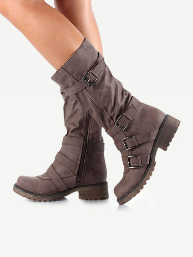 Nagy Méretű Csatos Dekorációs Cipzáras Lábszárközép Divatcsizma