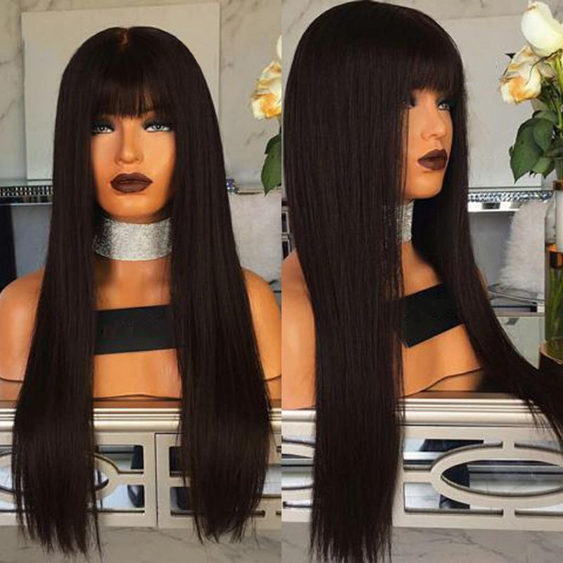 Neat Bang Természetes Rugalmas Bolyhos Egyenes Hajú Paróka Vegyiszálas