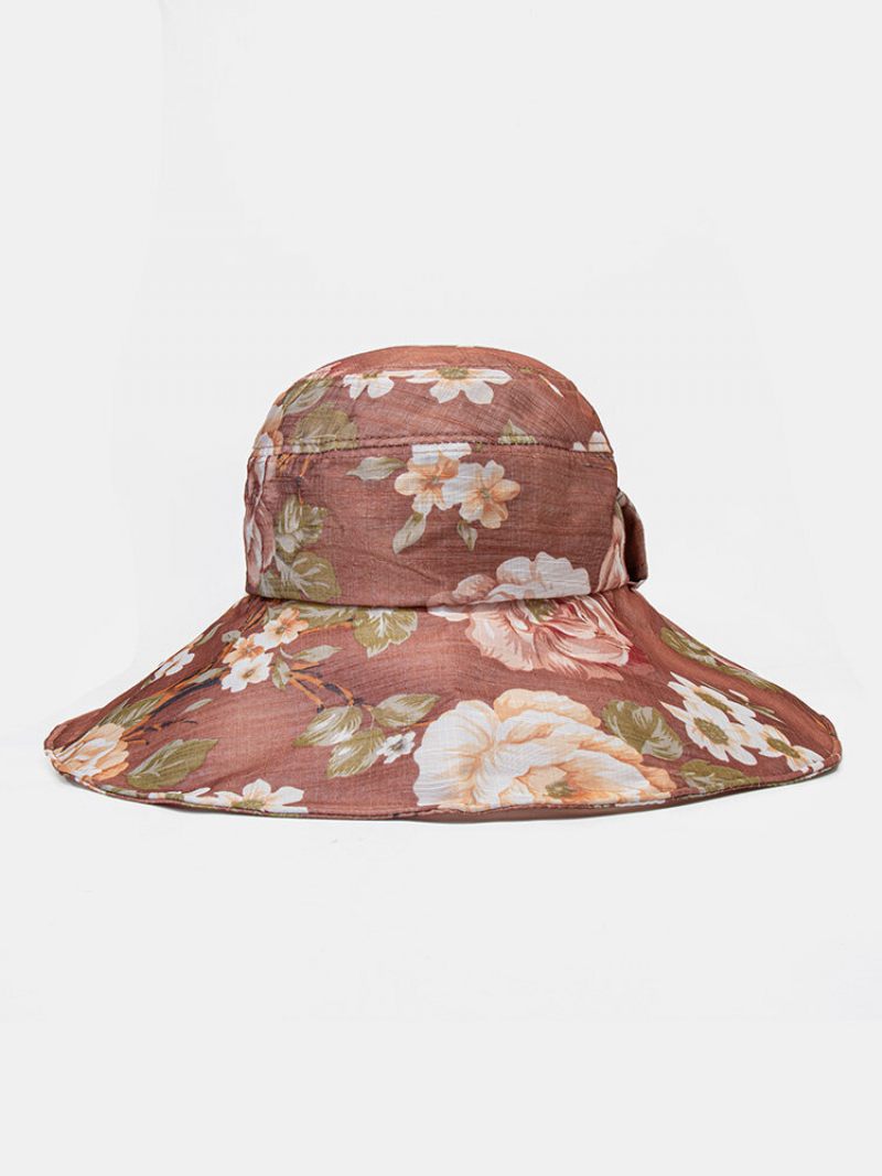 Női Dacron Overlay Calico Print Gomb Dekoráció Nagy Karimájú Lélegző Napernyő Összecsukható Vödörsapka