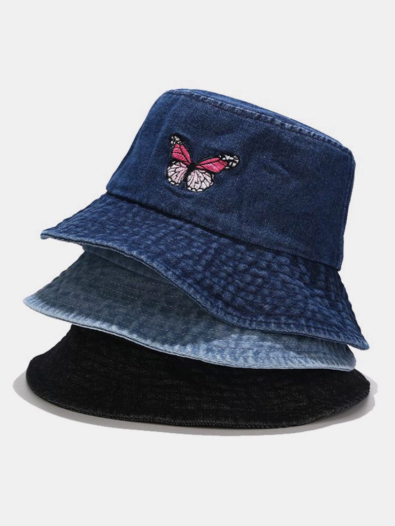 Női És Férfi Hímzés Pillangómintás Farmer Kültéri Alkalmi Napernyő Vödör Sapka