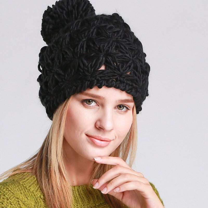 Női Kötött Sapka Kapucnis Kézzel Szőtt Üreges Gyapjú Alkalmi Kültéri Meleg Szélálló