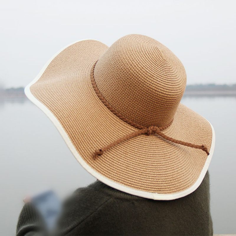 Női Nyári Összecsukható Tömör Panamai Stílusú Strand Szalmakalap Alkalmi Utazási Széles Karimájú Napvédő Sapka
