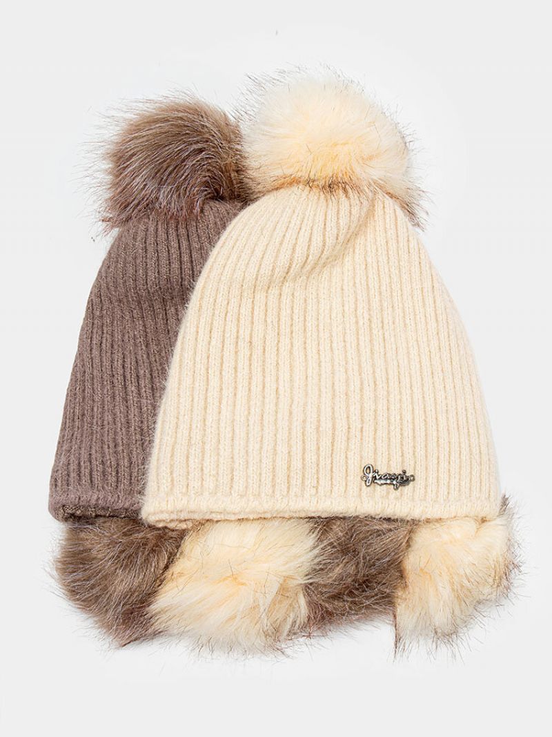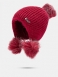 Női Nyúlszőrme Kötött Plusz Bársony Fülvédő Tömör Betűs Fém Címke Szőrme Labda Dekoráció Meleg Sapka