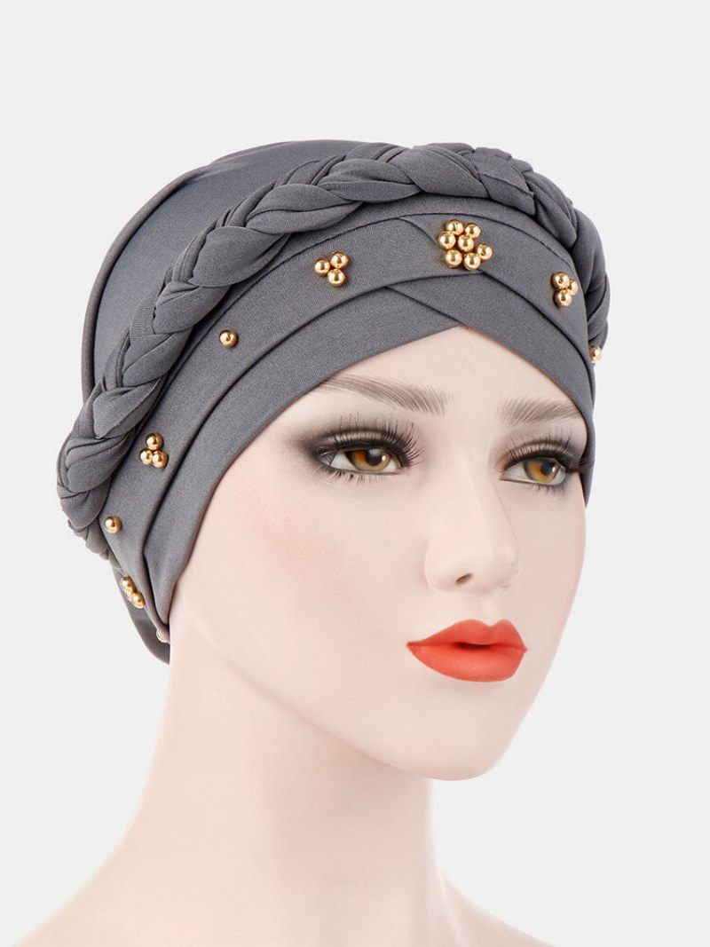 Női Pamut Több Színű Tömör Alkalmi Napernyő Szegecs Dekor Oldalsó Fonat Baotou Kalapok Sapka Sapkák