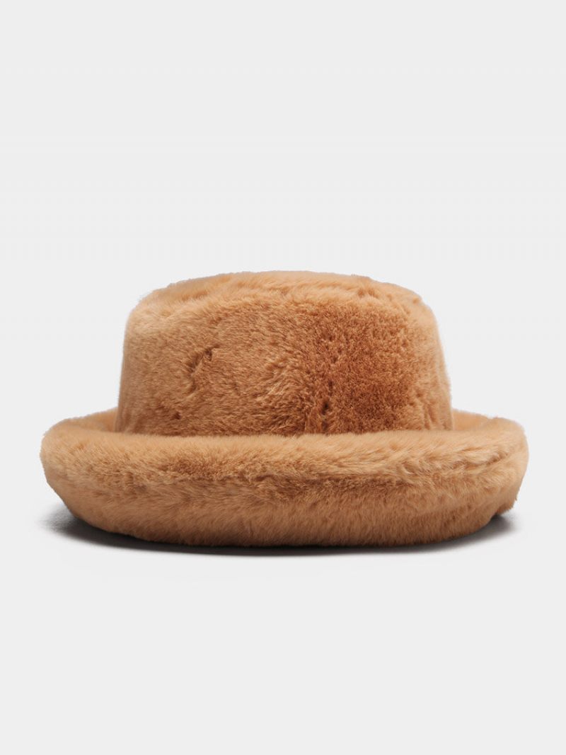 Női Plüss Egyszínű Vastagított Meleg Göndör Vintage Brit Cilinderes Vödörsapka