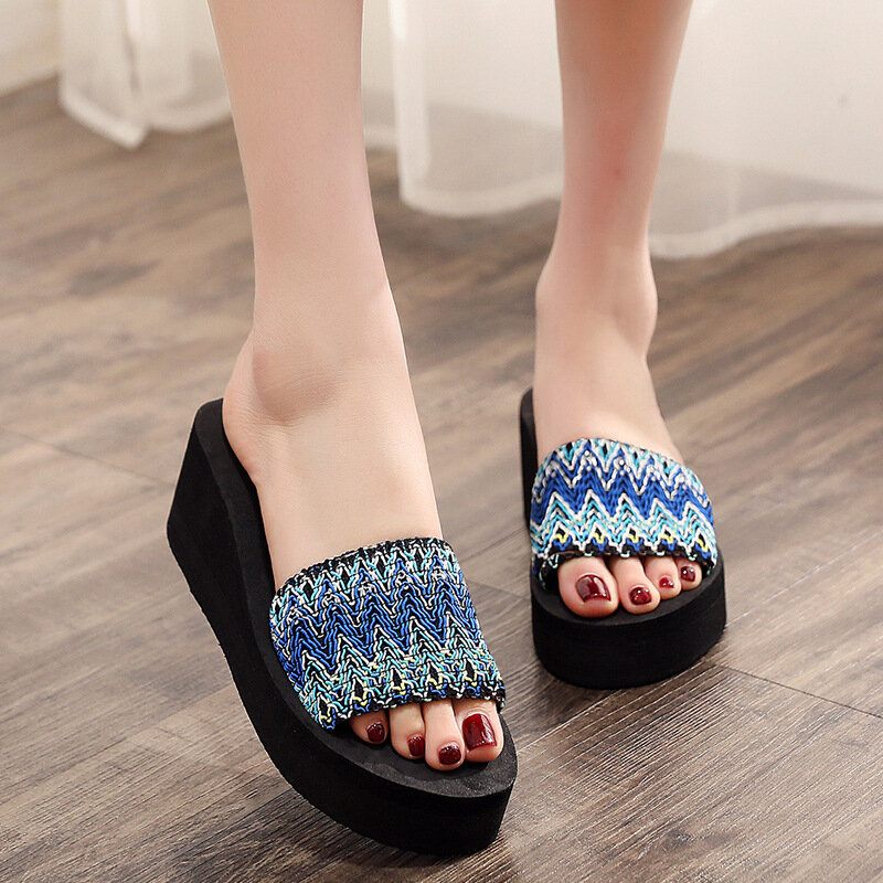 Női Színes Hullám Platform Nyitott Orr Papucs