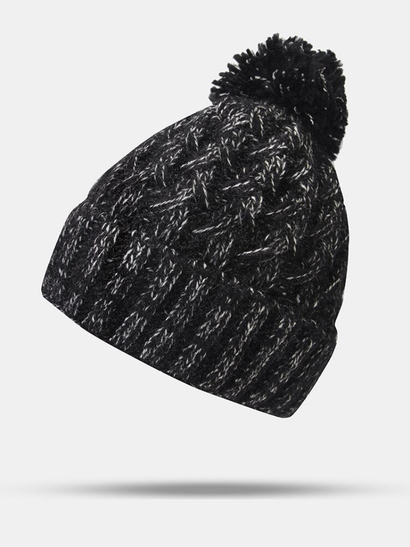 Női Vegyes Színű Kötött Plusz Bársony Vastag Bolyhos Golyós Meleg Fülvédő Sapka