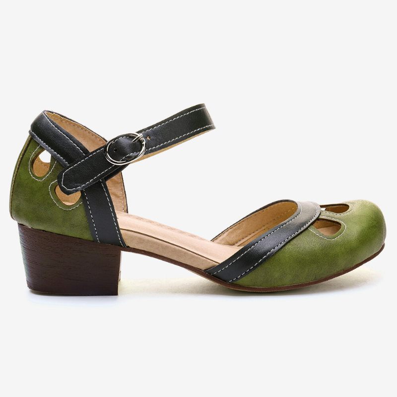 Női Vintage Üreges Csatos Pánt Vaskos Sarok Klumpák D'orsay Mary Jane Pumpák