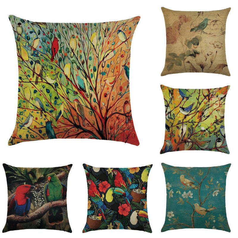 Otthoni Dekoratív Madár Állat Párnák Pamut Vászon 45x45 cm Háttámla Ágynemű Párnahuzat
