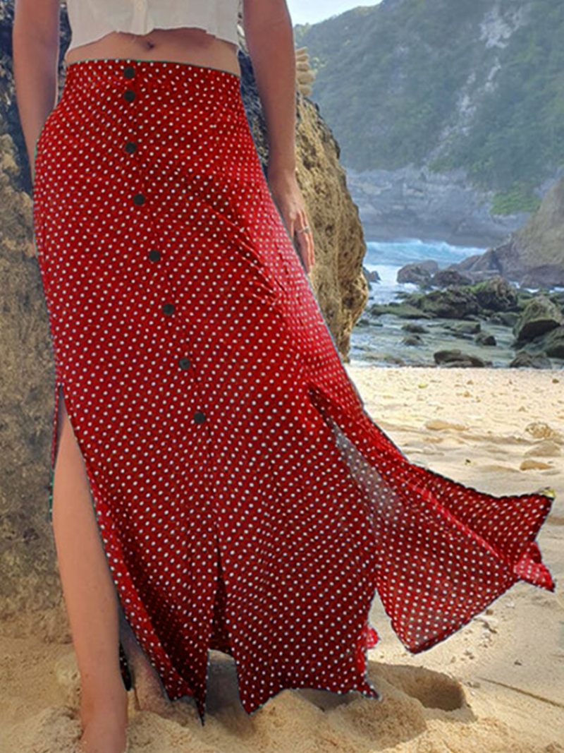 Pöttyös Nyomatú Osztott Rugalmas Derékrész Nagyméretű Szoknya