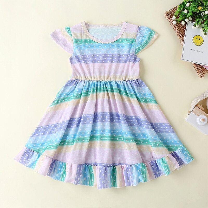 Repülő Ujjú Szivárványos Csíkos Alkalmi Ruha Lányoknak 2-8 Éves Korig