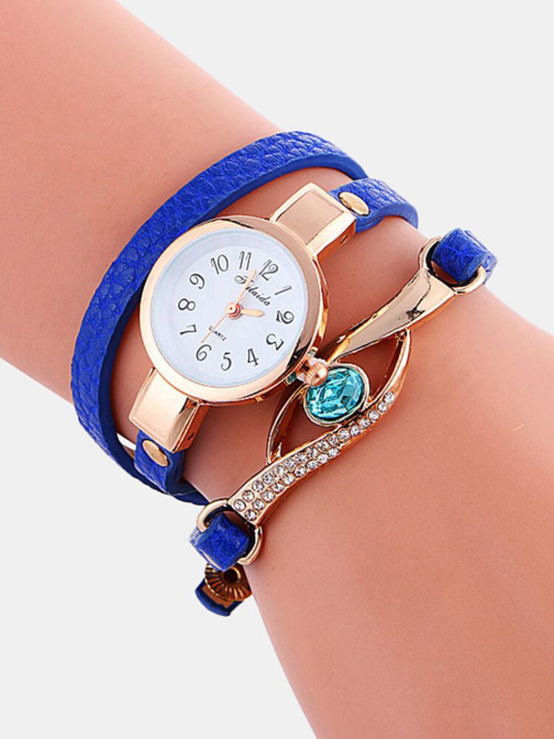 Retro Pu Szíjas Strasszkő Többrétegű Óra Fémkék Kristály Állítható Kvarc Óra