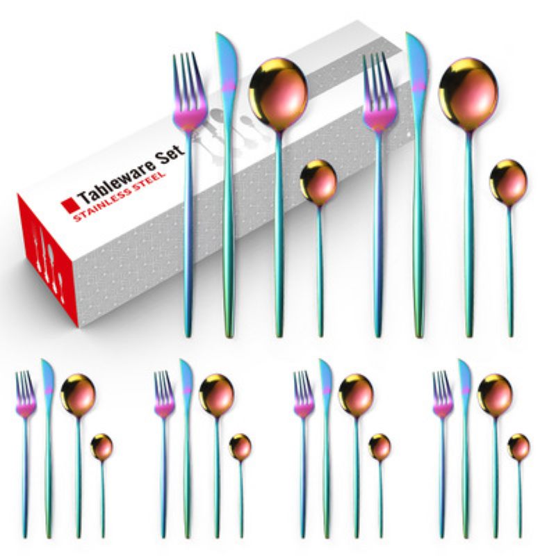 Rozsdamentes Acél Evőeszköz Portugál 24 Részes Szett Golden Creative Western Steak Kanál Ajándék Készlet Moq 1
