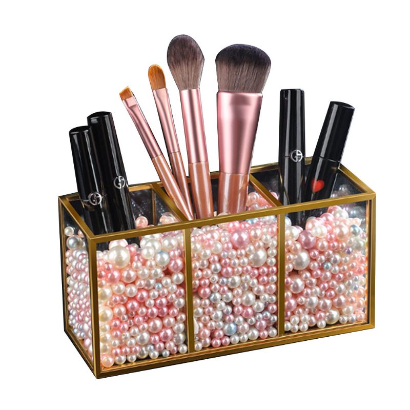 Stílusos Minimalista Átlátszó Üveg Asztali Tároló Állvány Ékszer Kozmetikai Ecsetek Tok Doboz Háztartás