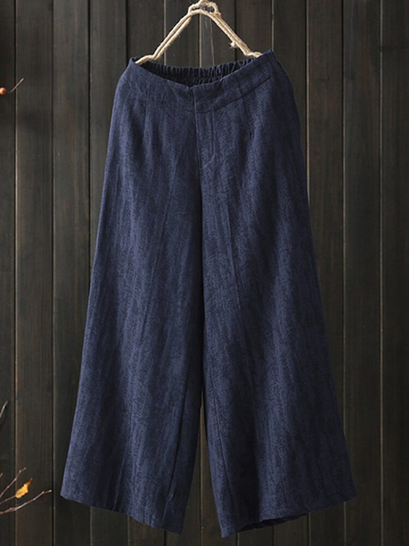 Széles Szárú Egyszínű Laza Rugalmas Derékú Alkalmi Nadrág