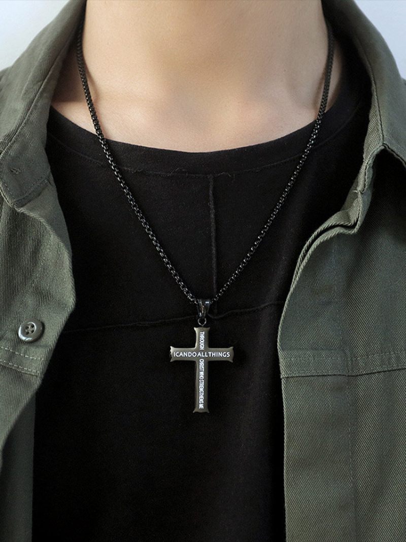Trendi Egyszerű Betűmintás Kereszt Alakú Medál Titán Acél Nyaklánc