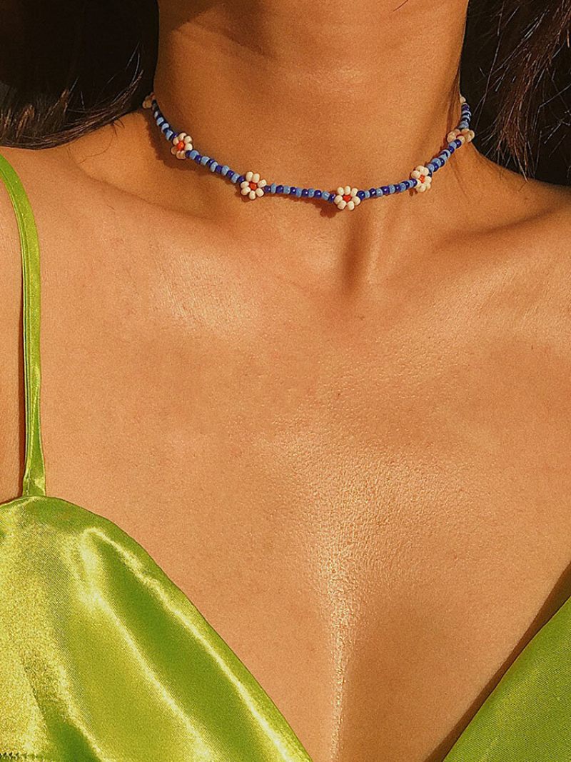 Trendi Kézzel Szőtt Készített Virágos Rizsgyöngy Kulcscsontlánc