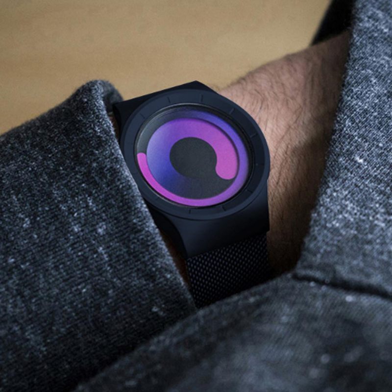 Új Dizájn Kerek Lila Örvénylapos Vízálló Acél Öves Férfi Karóra Egyéni Divat Sport Kvarc Óra