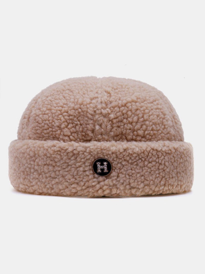Uniszex Báránygyapjú Egyszínű Betűs Kerek Címke Teljesen Megfelelő Meleg Karima Nélküli Sapka Landlord Koponya