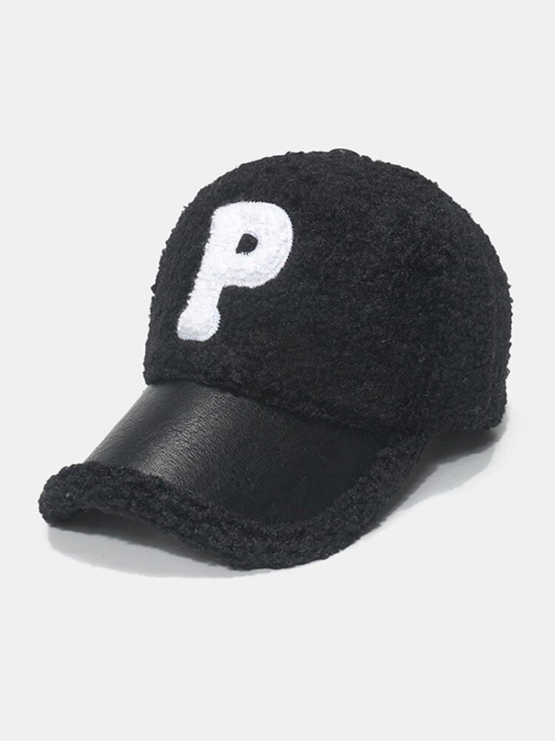 Uniszex Báránygyapjú Plüss Pu Patchwork Szín Kontraszt P Betűfolt Őszi Tél Kültéri Meleg Baseball Sapka
